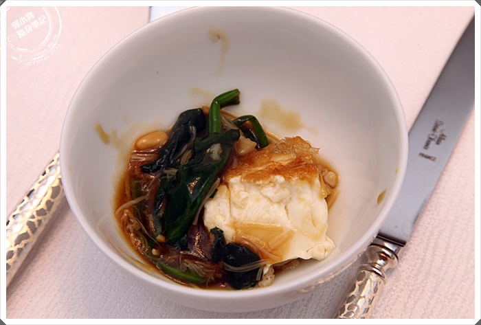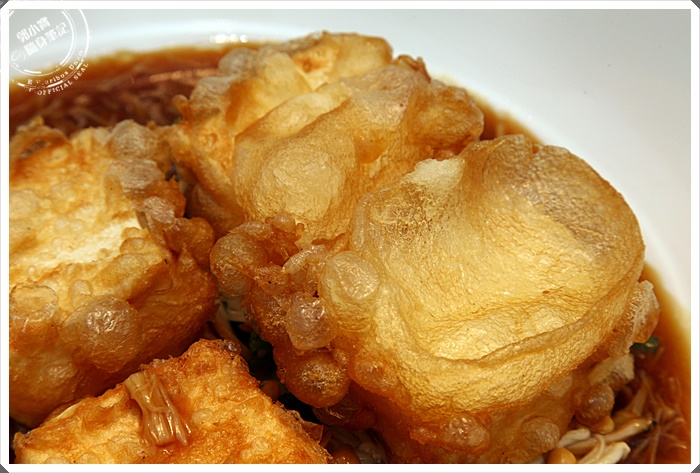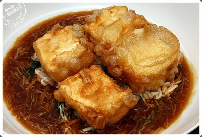 酥脆的外皮底下是嫩雞蛋豆腐,醬汁沾著嫩豆腐頗為美味,外皮浸泡湯汁後變得軟口也很好吃,不鹹甘爽的醬汁頗有畫龍點睛的效果。 |