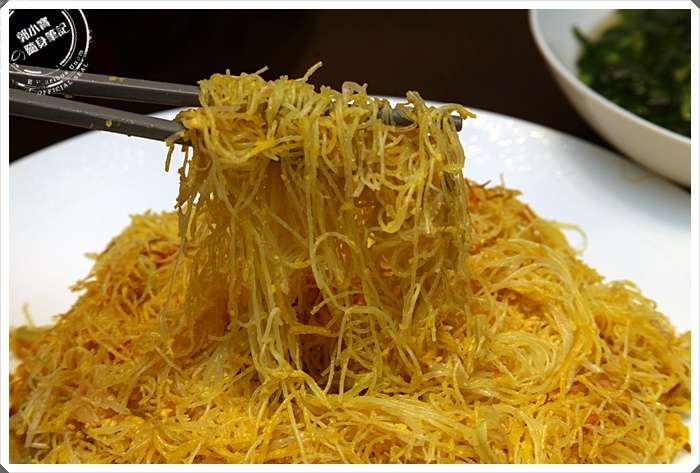 她不是真的說是無敵好吃,但是她卻一定是最特別的,我沒吃過這樣的米粉,每條米粉外層混著蛋液下去翻炒,光是這樣的功夫就能想像工要有多細了,夾起每一條米粉都是金黃色的,入口也是滿滿的蛋香與桂花香氣,確實真的開眼戒了。