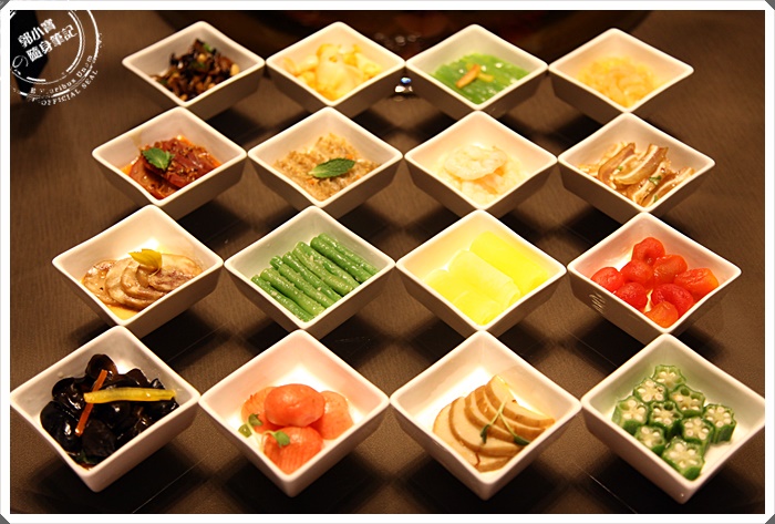 16小碟看起來超壯觀的,16種小菜也都滿可口的,大部分以偏酸甜的開胃菜為主,口味都不會太重,顏色也配色的非常豐富,光看就夠讓人流滿地口水了。 |