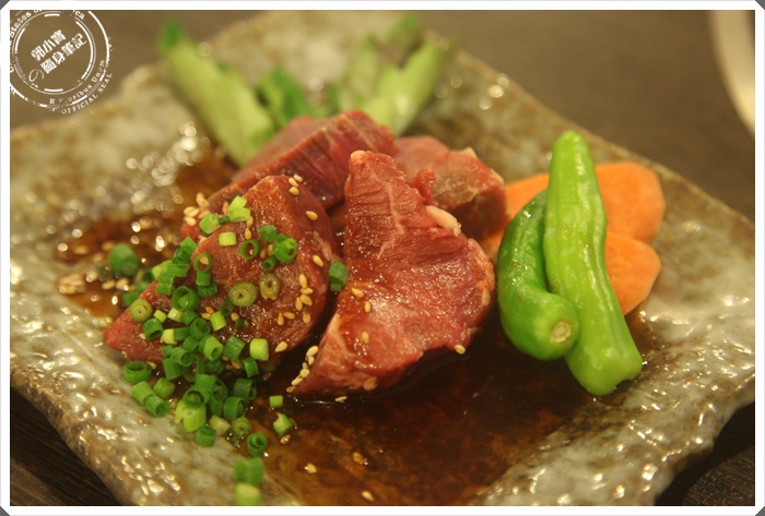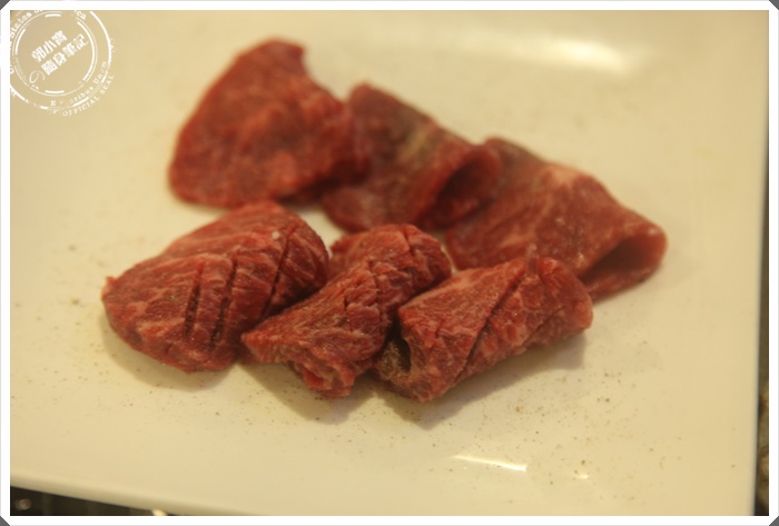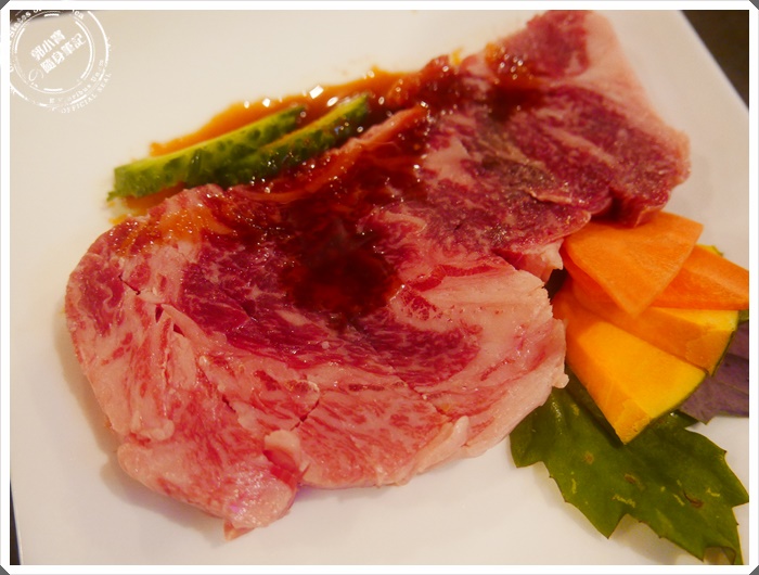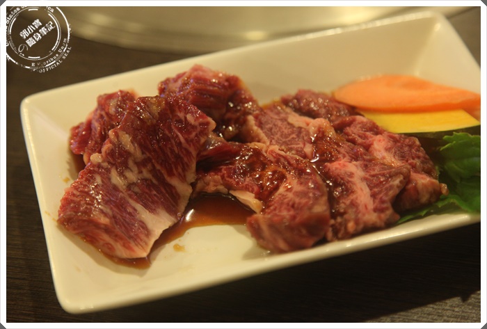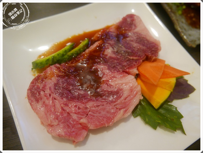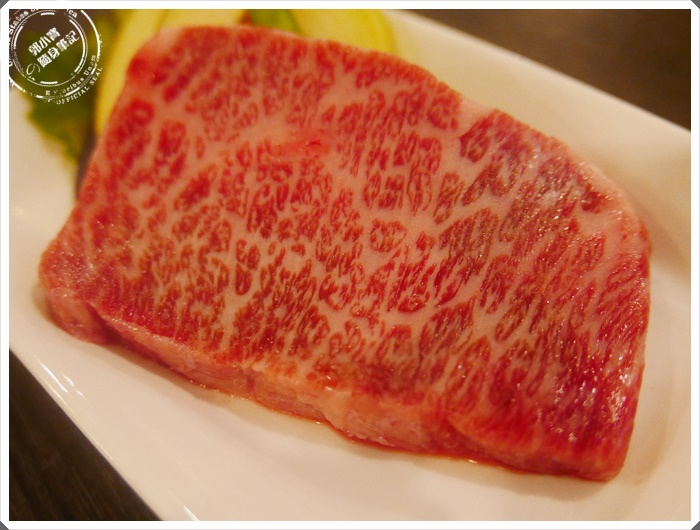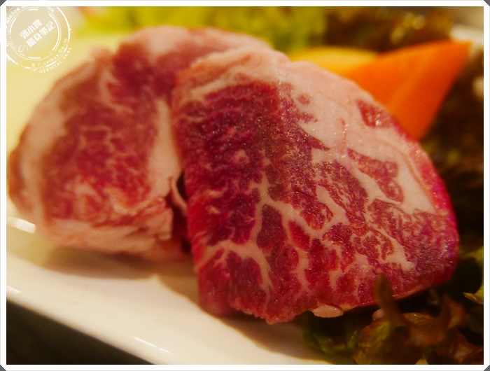 老實說我也不知道我有沒有吃過前大腿肉,因為菜單上面就是這樣寫,不過看起來油花的部分確實不多,大腿可能運動量也滿多的,但是也是黑毛和牛的特選標誌。 |