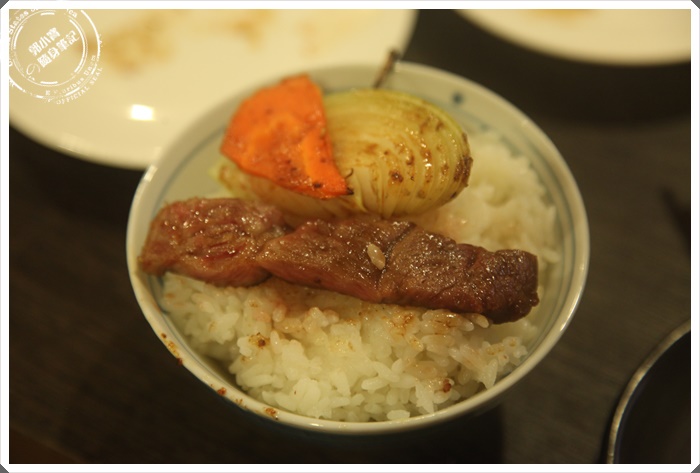 本來以為會帶筋,後來入口發現筋都已經去掉,其實也算很好吃,但是跟剛剛的沙朗心比起來真的有差異,油脂一樣豐富,但是就會有一點點膩的感覺,特選和牛真的油脂比較甘甜許多。 |