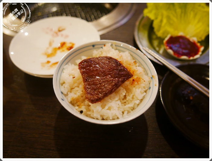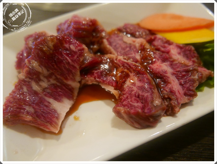 我個人真的認為它們家非常哭被,因為不管生肉油花多不多,每一塊肉烤起來都是油光滿肉的狀態阿,入口吃的到肉的纖維口感,但是還不會太難嚼口,血水跟油脂都很甜! |
