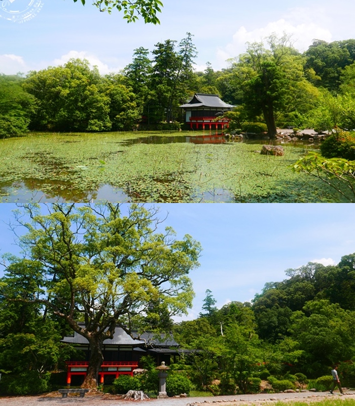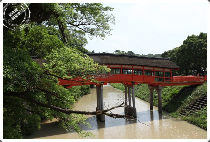 宇佐神宮的腹地大概跟一個城一樣大了,外層還有一圈護城河真是壯觀,因為前幾天都下雨,所以河水有點濁,聽說平常的時候非常的清澈。 |