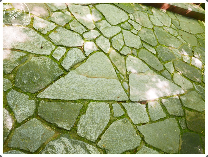 照片中很明顯的兩個三角形的石板,據說只要是情侶或是夫妻一人踩一個走過去,就可以幸福快樂一輩子,一個人走過就可以很快找到另一半。 |