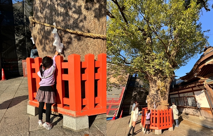 讓人最有印象的就是這大樹,通常日本的樹木只要是綁上麻繩並且有白紙片,就是代表這棵樹已經有神靈了,也是神明的靈樹,據說摸了她的樹幹就可以賺大錢呢! |