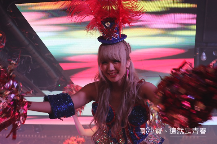 裡面有三個主唱的實力頗佳,一開始就帶來很有活力的歌曲,加上他們家的互動道具真的還滿多的,都不知道這些東西甚麼時候搬出來的,一個半小時的表演裡面有幾首歌曲,頗讓人覺得是在看演唱會的氣氛,比夜店還嗨! |