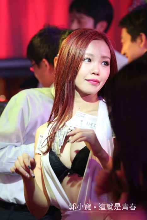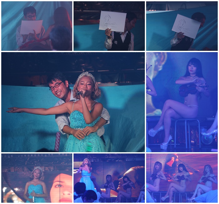 在節目開始前,表演者還會分送雞尾酒針筒,尤美女們把針筒內的雞尾酒打到客人的嘴裡,看看友人的幸福模樣就知道我們真的是一堆死宅男了,當然我嘴巴也是張的很大,所以也有獲得漂亮妹妹注射雞尾酒一隻~哈哈 |