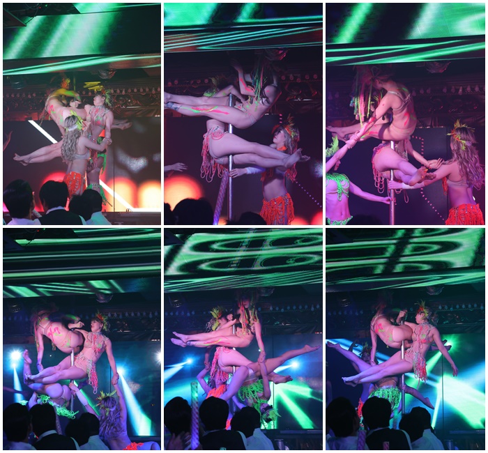 接著是我個人生平看過最屌的鋼管表演,三人鋼管真的是太厲害了,且難度都是超高的還一次上三個人,最後還增加到五個人,看得我是目瞪口呆,真的超值得一看的,當晚打卡的詢問簡直是破表的高! |