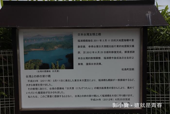 福浦橋因為311地震海嘯的時候毀損,日月潭的觀光船業者集資幫忙重建的,所以旁邊還有立碑文告知,這是台日友好的友情之橋。 |