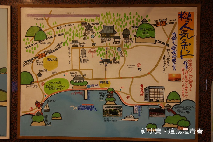 櫃台有一張散策路線地圖我覺得非常實用,讓你一目了然整個松島風貌,對我來說我覺得松島地區最少最少也要安排個兩天一夜才有辦法把她走個透測。 |