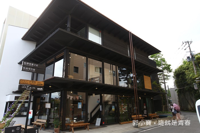 坐落在五大堂對面的松華堂是日本人來松島一定會造訪的下午茶店,一樓的地方是賣伴手禮的,但是厲害的是在它們家二樓,本身建築就很漂亮的松華堂,二樓的景觀可以看到超美的五大堂以外,最出名的就是他們家的甜點了。 |