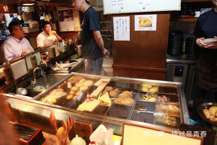 板前內的關東煮方形爐裡面擺滿了各式各樣的關東煮看起來就很厲害,不過我個人還是喜歡台灣的黑輪攤,可以自己拿品項也是五花八門XD |