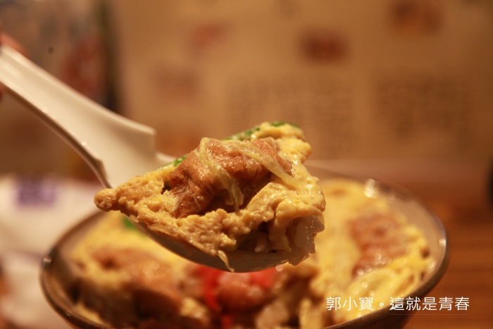 白飯淋上醬汁在放上油麩跟蛋花,一口吃下的感覺就是蛋香濃郁,醬汁偏甜卻不膩口,油麩的口感有點像式浸泡過的油條相當美味,整個吃起來非常順口,感覺是小朋友會喜歡的口味,好吃又特別,我順便就把這一碗嗑光了。 |