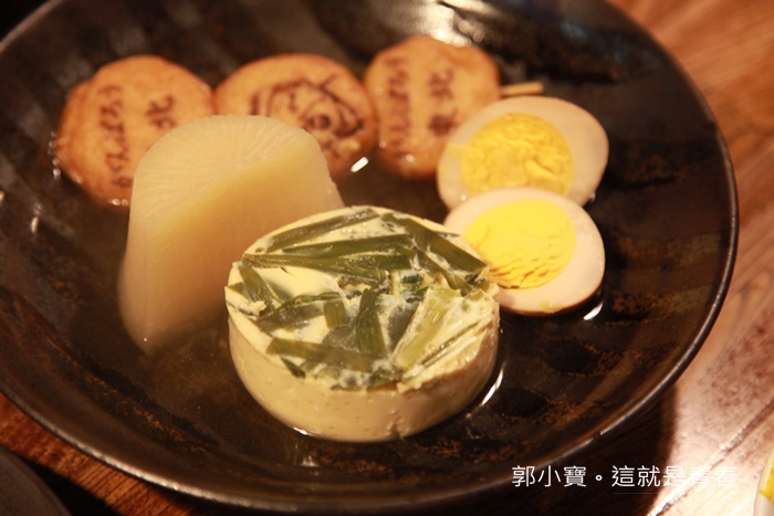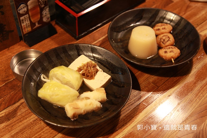 因為我們看不懂日文菜單,所以師父特別讓我們接近關東煮爐直接指要吃甚麼,點好後師傅一個一個撈起來還細心的切好盛盤,真的有夠費工的XD |