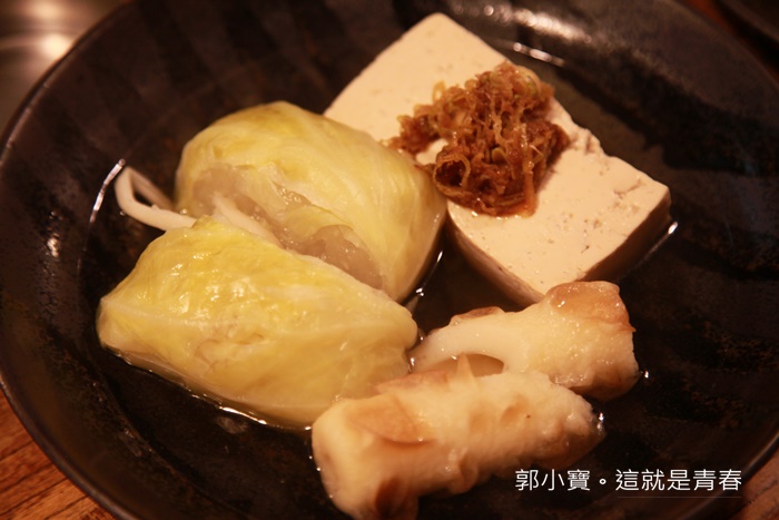 我們點了高麗菜卷跟竹崙還有豆腐,豆腐還特地放上了柴魚醃製物,特別! |