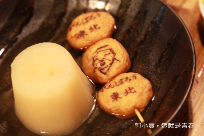 白蘿蔔燉煮的口感正剛好,綿口但是還吃的到纖維,我還滿喜歡的,一旁的腐卷還可以看到東北加油的字樣。 |