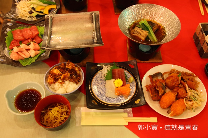 還有提供紅酒跟清酒喝到飽這一點真的很酷,這樣是台灣人來這邊大概會認為一整個就是天堂,小菜的選擇性也很多,一人一套的主菜有生魚片跟和牛、豬肉為主。 |