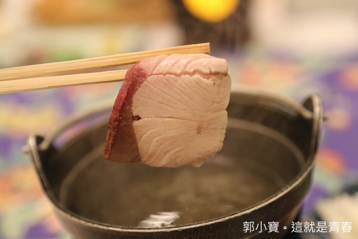 看起來似乎是熟成過的生魚片,店家還準備了一個涮涮鍋,如果不敢吃生食的話,可以放到鍋裡面涮個兩三秒,我個人直接吃覺得很好吃,與一般的生魚片不同,有股甘甜味。 |