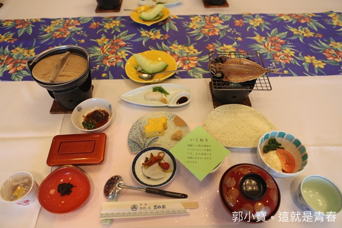 因為我們行程排得太滿,所以匆匆的放著行李就趕緊來到宴會廳準備享受晚餐了,吉田屋的一泊二食大約一個人士台幣4000~5000不等,不過我們這次去的時候是屬於淡季,所以非常便宜,提供晚餐跟早餐真的都很棒。 |
