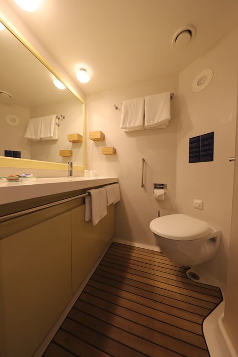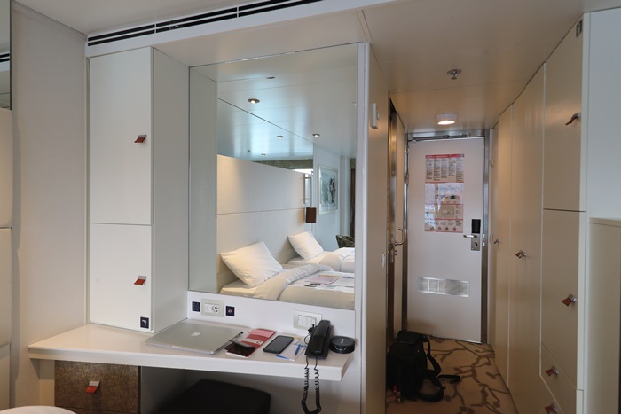 我比較佩服的是他們房間的巧思,雖然不像一般飯店空間的大,但是麻雀雖小卻是應有盡有,而且都不感覺到擁擠,配置的剛剛好,梳妝台的桌子還可以放上15吋筆電輕鬆打電腦以外,重點是鏡子很大一片,也不用擔心光線不足,在海上最充足的就是光線了,只要把窗簾打開保證有滿滿的陽光。 |