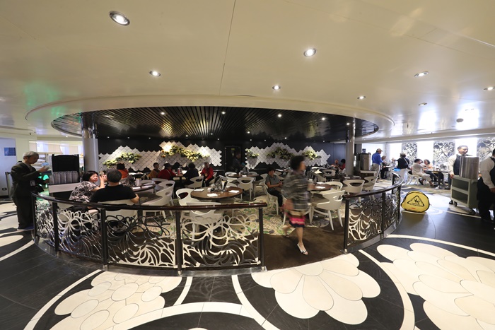 這個地方是披薩屋,也是晚上的另一個付費餐廳,平常是大家吃飯的空間,說到這餐廳不得不先跟大家報告一下,全球唯一郵輪上有明火的地方就是這裡了,最正統的義大利披薩在這邊就可以品嘗到,光是郵輪上有明火這一點就超屌的,工作人員說他們花了超多錢才通過檢測跟SOP,如果喜歡看帥哥的話,晚上來這邊可以看到許多國外的船員在這邊聊天吃飯。 |