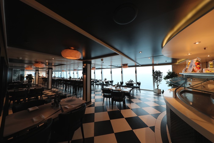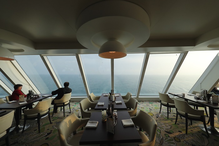 10樓的自助吧餐廳我最愛的是船尾的這個用餐空間,有大面積的落地窗可以看到海洋的景色,超美的! |
