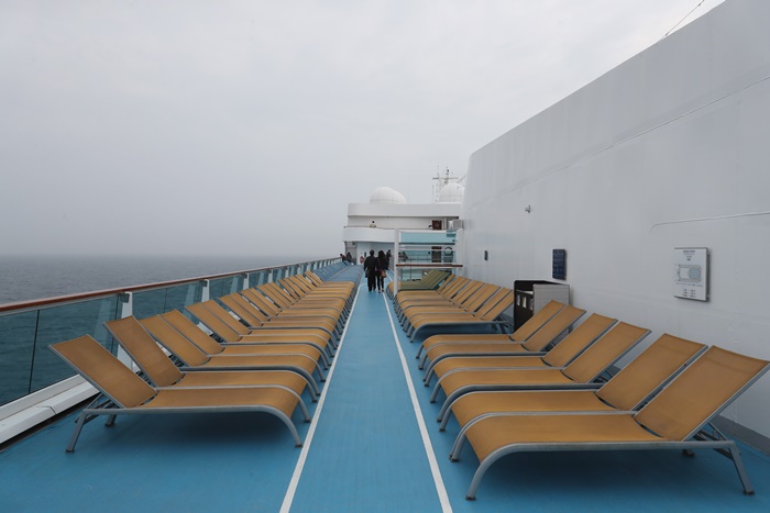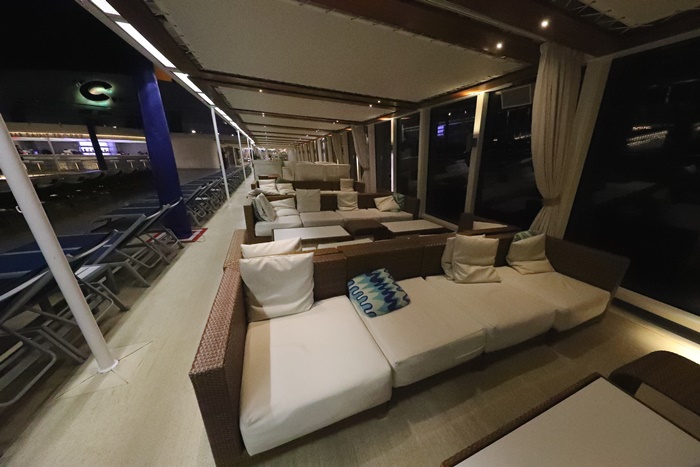 甲板上的沙發區也超舒服的,尤其新浪漫號全都是採用玻璃帷幕所以非常漂亮,不用用鐵欄杆圍起來,這質感就真的差滿多的,有時候我還覺得時間真的不夠多,因為行程超滿都沒辦法好好享受這些休閒的地方。 |