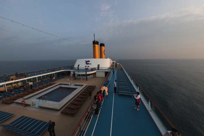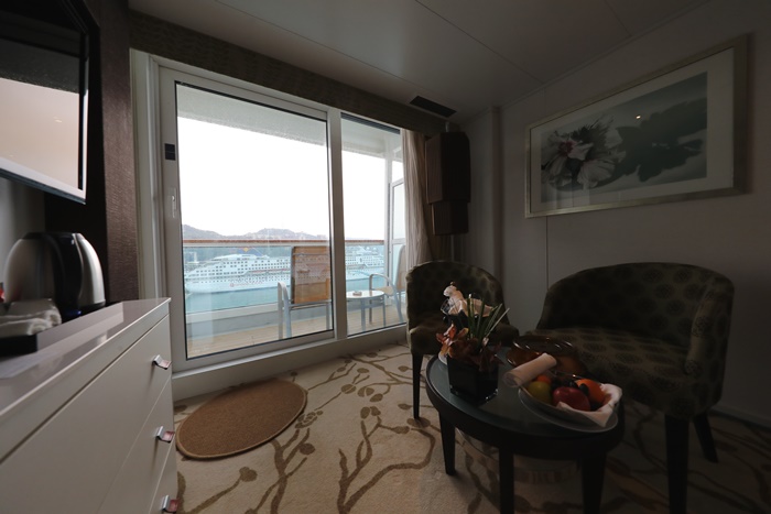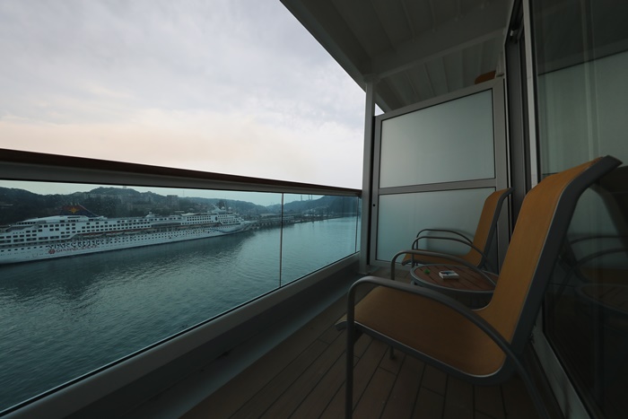 我最愛的就是這陽台,COSTA歌詩達郵輪的海景房真的超威的,除了房間內的裝潢超漂亮以外,這陽台也超受歡迎的,玻璃帷幕的柵欄讓質感翻倍,坐在這邊享受夕陽或日出都是人生一大享受,享受海風的吹撫真的非常舒服愜意,我這六天有空幾乎都在這邊度過,聽著音樂喝著咖啡跟香檳,非常悠閒的放鬆。 |