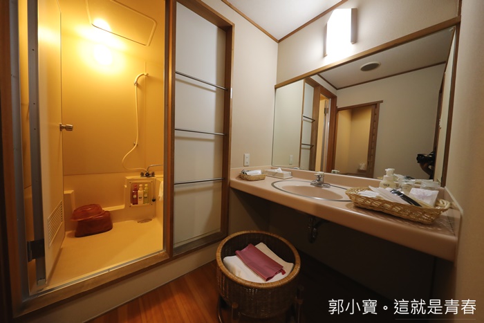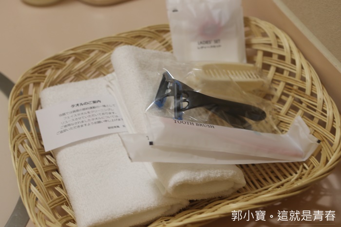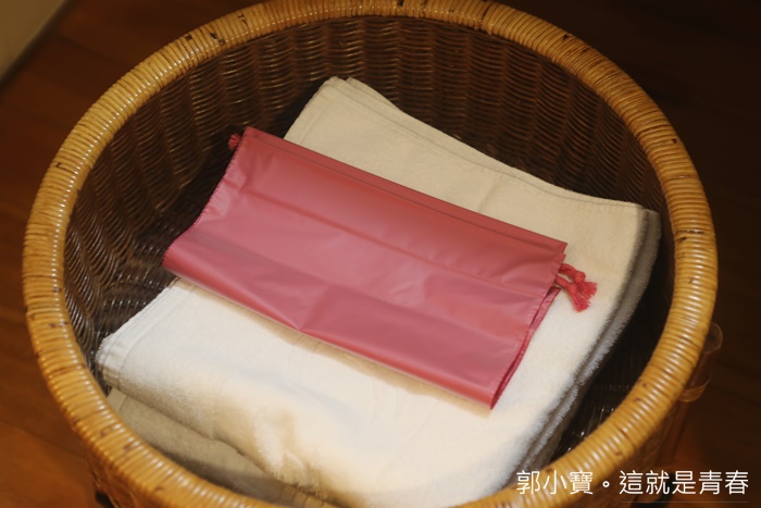 竹籃子放的是毛巾跟浴巾,還有一袋讓客人帶去大浴池的小毛巾。 |