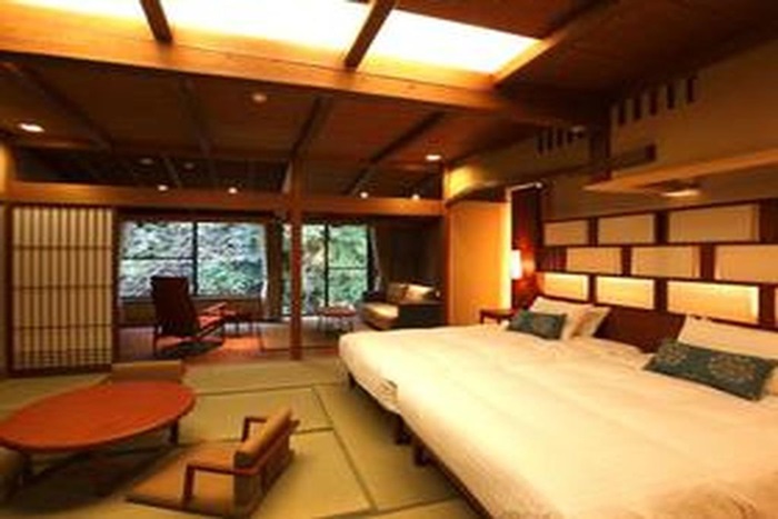 泉旅館經過改建後,可以看見西式和日式完美的現代裝潢設計結合,
