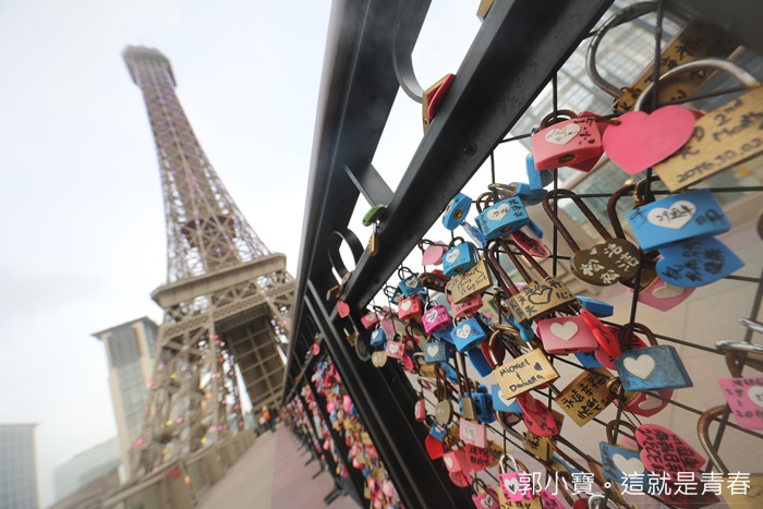 通往巴黎鐵塔的天橋上中間的分隔欄上面還鎖了滿滿的情人鎖,情侶來這邊通常都會買上一個鎖頭寫下來個人的名子,希望可能牢牢的鎖在一起。 |