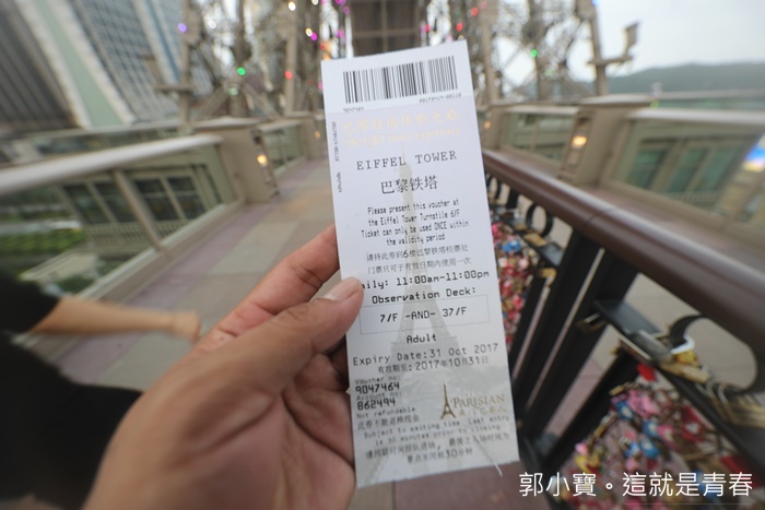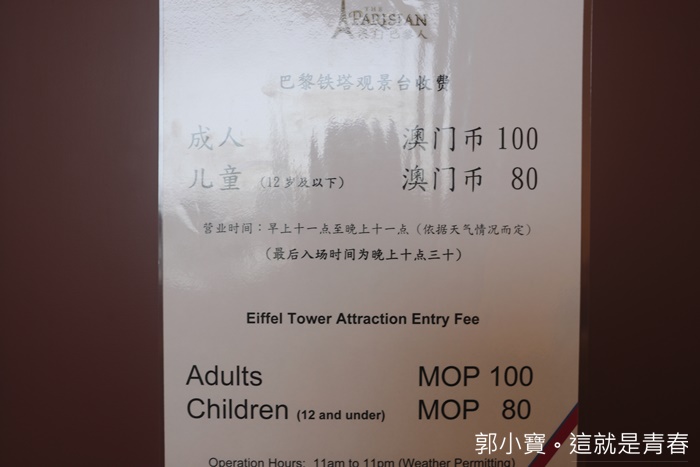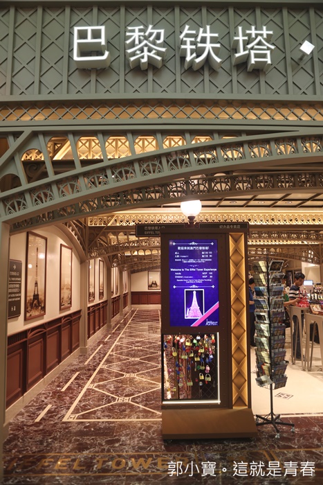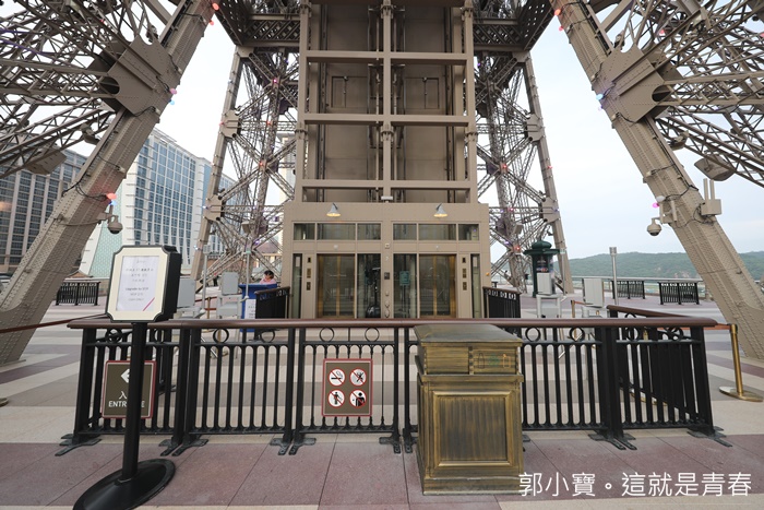 來到澳門巴黎人除了近來飯店裡面感受一下巴黎風情以外,當然還要登上澳門巴黎鐵塔眺望整個澳門島,巴黎鐵塔的入口在二樓的購物中心內,有點不太好發現,入口不是很大,好險有明顯的路標指示,不然我經過可能都還不知道這就是入口。 |