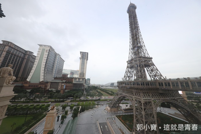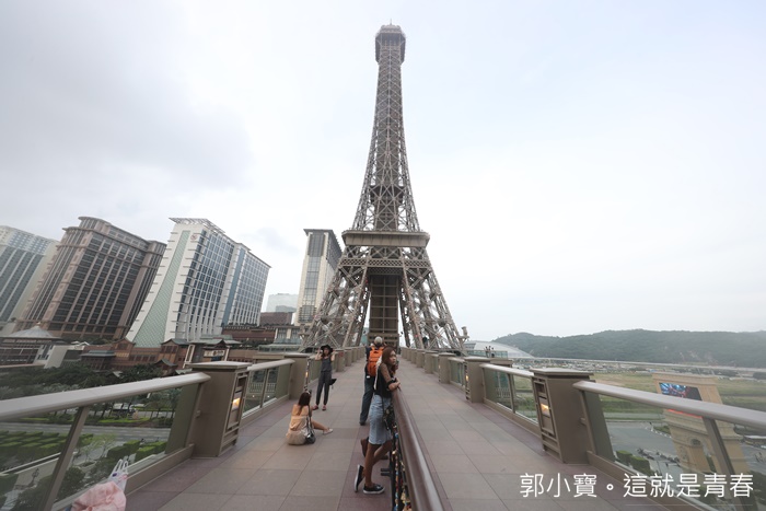 巴黎鐵塔上的景色真的無限好,一眼眺望整個澳門島的風光,還可以一眼看盡整個巴黎人飯店的全景,這邊看巴黎人酒店一整個就是壯觀無比,真的超美的,如果晚上上來看的話不知道風景又是如何呢! |
