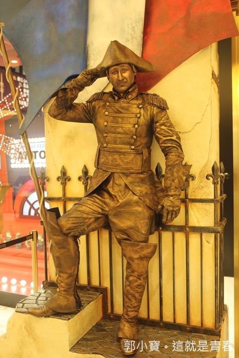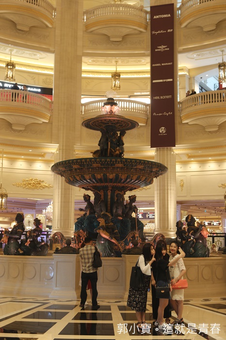 最多人拍照的地方大概就是巴黎人大廳的圓環水池,簡直就是把巴黎的工藝水準完整的復刻過來澳門了,貞的一整個就是超華麗的,加上巴黎人還用了很多外國人穿著巴黎傳統服飾,成功營造出巴黎風情。 |
