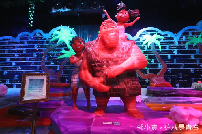 真的很難想像這彷彿跟真的一樣的人物都是冰雕出來的,很多上面都有掛著請勿觸摸的牌子,所以大家還是要遵守規矩,雖然我個人也超想摸摸看是不是真的冰塊雕出來的,但是看到這麼精美的冰雕還是不忍破壞他,裡面真的氣溫真的真的很低,所以千萬要租雪衣近來,這個地方帶小朋友來真的相當值得,每個小朋友幾乎都玩的不亦樂乎,爸媽也幫小朋友拍照拍的很開心呢! |