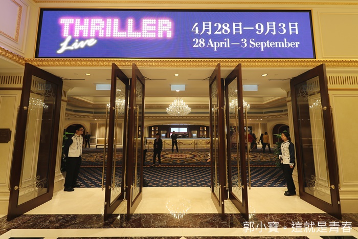 看完冰雕秀以後我們直接前往澳門巴黎人的表演廳,這邊是很多人都在搶票的麥可傑克森的紀念展歌舞秀,基本上就是座無虛席的表演。 |