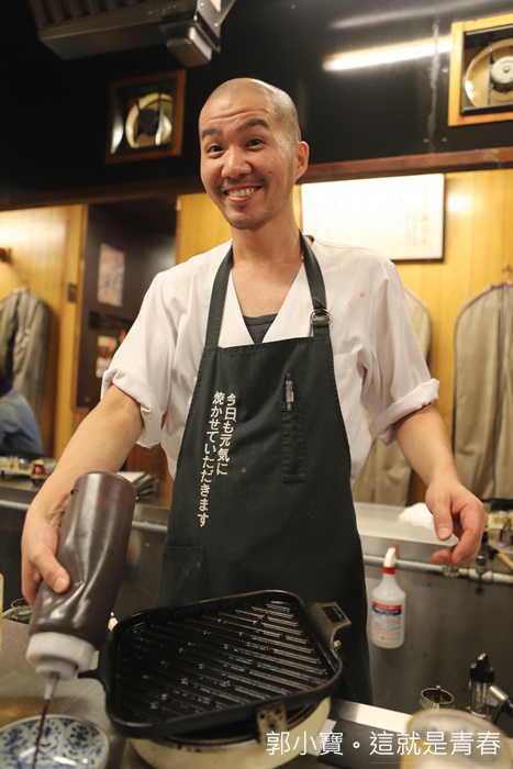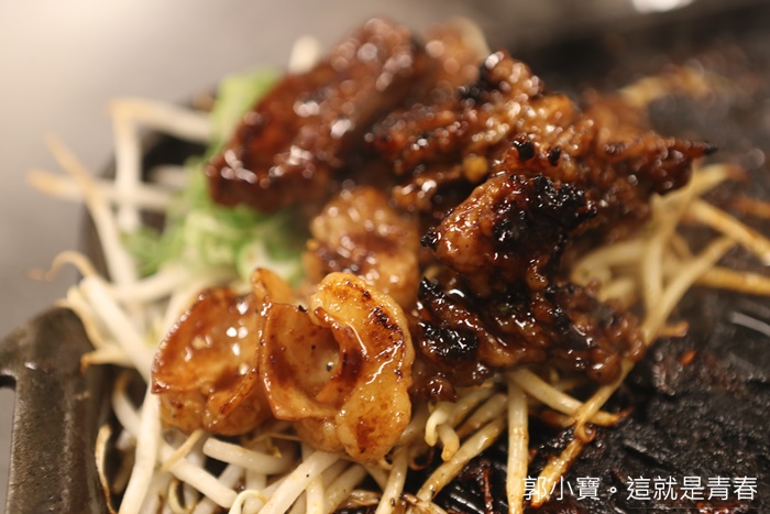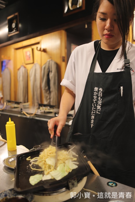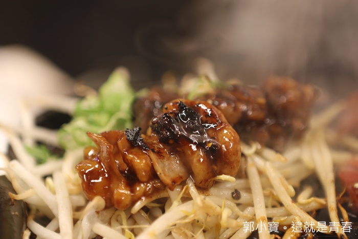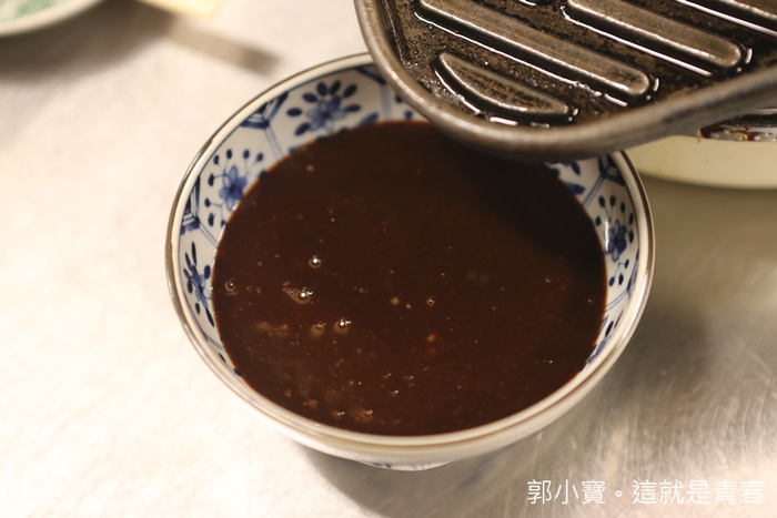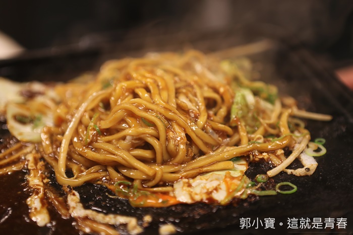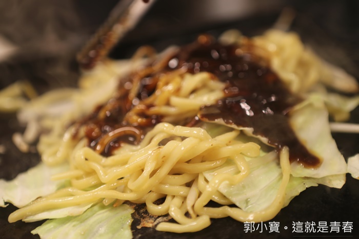 店內的燒烤都是代客服務,所以只要動筷子負責吃就好了非常方便,鐵板下方還有工作人員會放置一個醬汁碗,先擠上醬汁後來燒烤的肉汁跟油會混合再一起,但是這個是有點炒麵才會幫妳這樣處理,炒麵會最後才上。