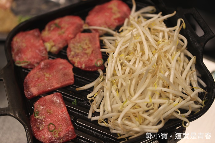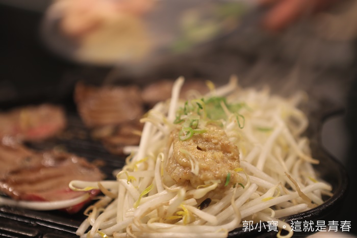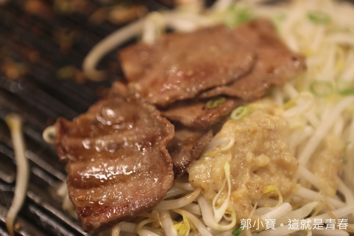 店員將烤好的牛舌放在豆芽菜上,在塗上特製的醬料,醬料吃起來有點鹹。 |