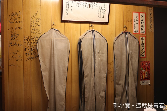 因為燒烤的味道比較重,店內還有提供掛衣斗篷,避免身上的外套或者衣服沾染了燒烤味,牆上還有許多名人簽名。 |