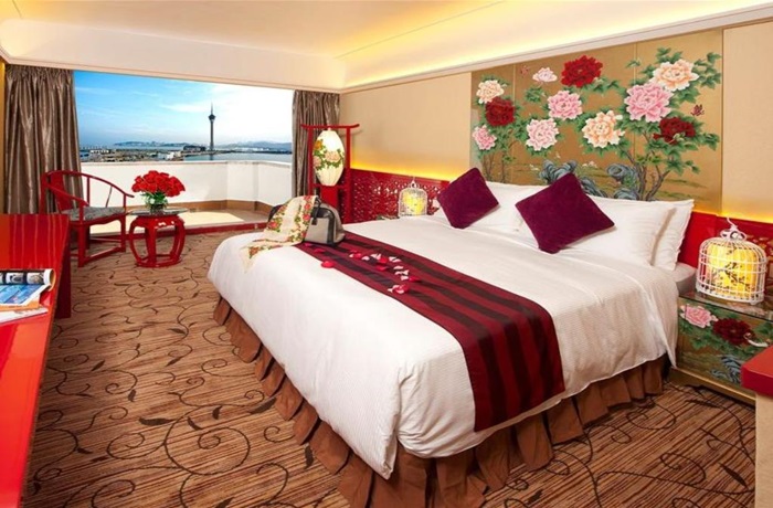 若是住豪華湖景房,泡澡時可以看到澳門塔,躺在床上還可遠眺大三巴,
