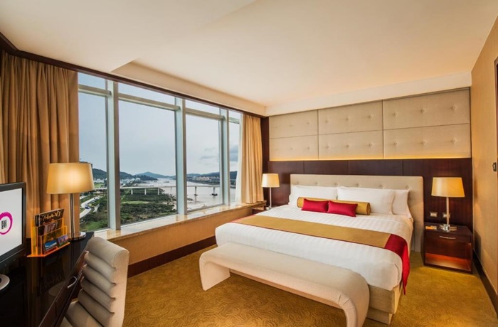 距離機場很近,位在新濠天地,交通方便,接駁車可以到澳門很多地方,