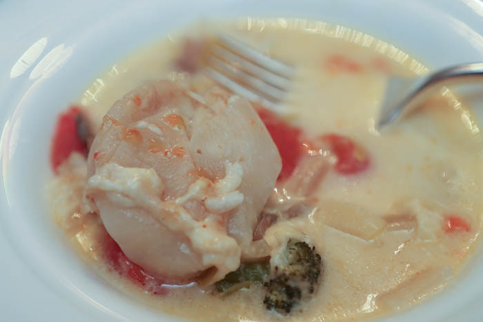 起司海鮮鍋一上來的時候大家都瘋狂了,還沒開動就可以聞到那陣陣隨著鍋裡滾燙的白煙冒出來的起司奶油香氣,搭配超大顆的新鮮大干貝真的太滿足了,每一口都溫暖了這個寒冷的夜。 |