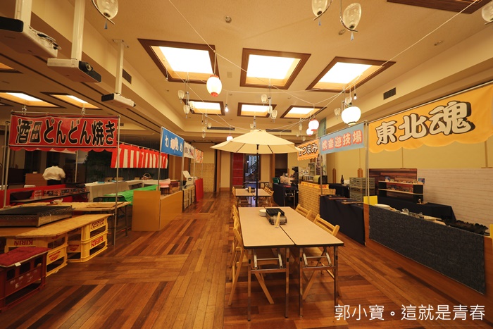 晚上住在花園酒店旁邊就是超大間的超級市場跟藥妝店,所以大家採買的火力相當集中,這次的行程大部分飯店旁邊都有購物中心,非常懂得我們的需求,這家飯店最有特色的是晚餐的部分,把整個日本夜市文化搬到飯店餐廳內,每個人都可以品嘗到日本夜市文化的餐點,主餐是牛排跟生魚片外加其他都是吃到飽了,還搭建了流水麵出來真的非常用心。