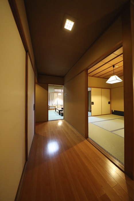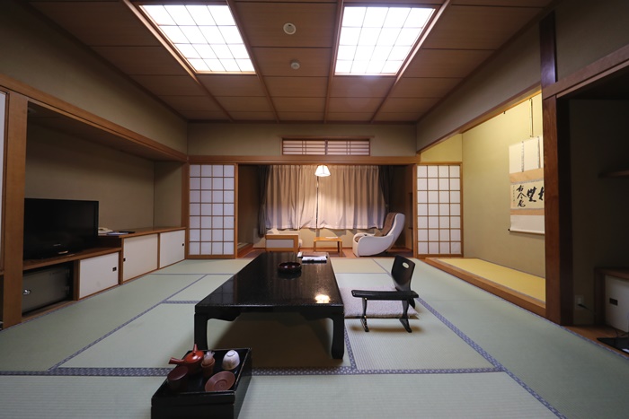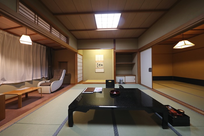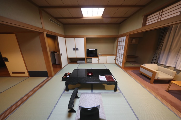 裡面的房間是兩個房間,彼此都有拉門,整個拉開後就可以看到超大的廣間,如果真要擠一擠睡覺的話,這房間大概可以睡個10來個都沒問題,真的太大的,且連天花板的木頭都保養的超好,真的沒話說。 |