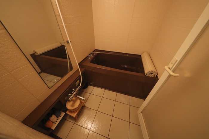 浴室裡面也是我喜歡的設施,是可以坐的淋浴,搭配一個中型浴缸,但是來這種日式旅館一定要去泡大眾池溫泉,佐渡的旅館大多都是有溫泉的,且因為佐渡四面環海,大多大眾池溫泉都有面海或是面湖的美景。 |