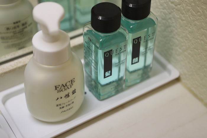 洗手台上除了洗手慕斯以外,另外還有收斂水跟髮水,相當貼心。 |