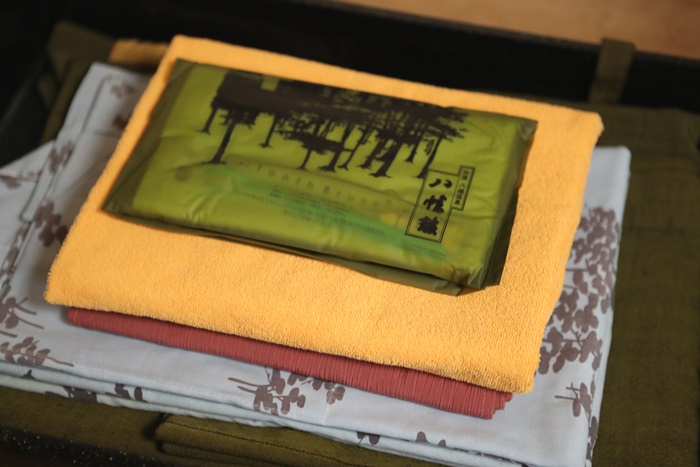 衣櫥內有浴衣、毛巾跟洗漱用品,洗漱用品內還有擦腳巾。 |