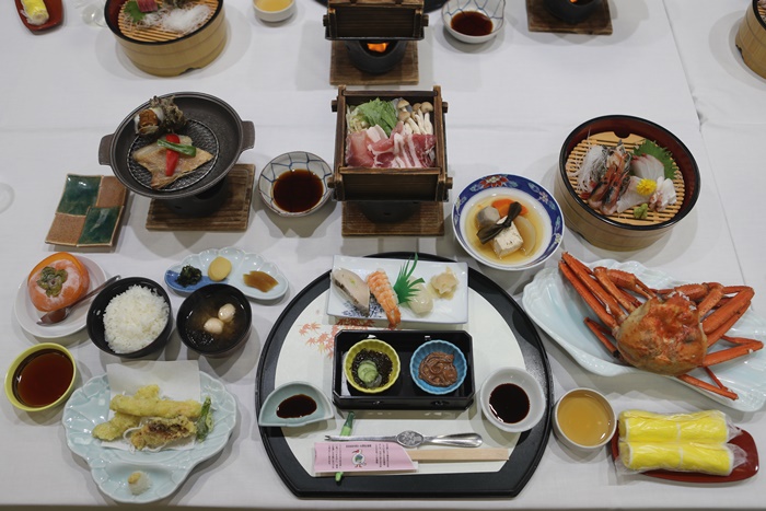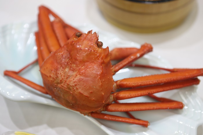 一坐下來就看到一整隻的松葉蟹就覺得食慾大開,第一次吃到會席料理有一整隻松葉蟹的,這次預算真的滿足夠的。 |