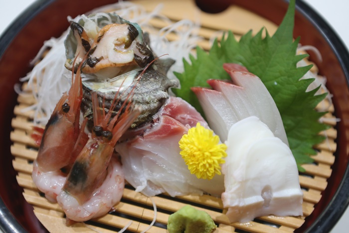 生魚片超級新鮮以外,還有少見的生螺肉,甜蝦的甜度也超美味。 |