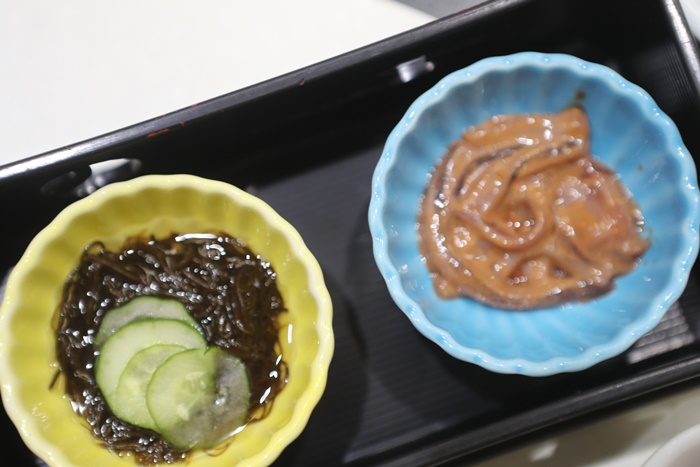 接著我請工作人員一次把菜都幫我上齊,會席料理基本上會一次上一半的菜,另一半會慢慢上,我則是為了拍照,所以請工作人員一起幫我上,一整桌的美食都是一人份的,看得我口水直流。 |